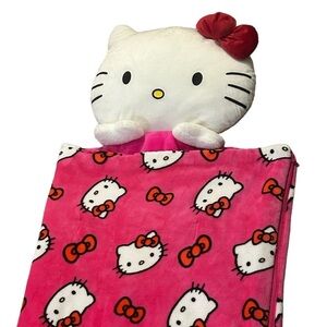 Take your favorite character on the go with this Hello Kitty “Slumber Kitty” Slumber Bag with Pillow. This super soft and vibrantly colored slumber bag is perfect for use on top of the bed, on the floor, at home, in the vehicle, and for sleepovers and slumber parties. The plush slumber bag includes an attached pillow with a side zipper for easy open and closure. This slumber bag features an easy to store design, simply roll up and attach the hoop and loop straps.