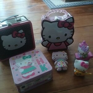 The product is a set of three Hello Kitty tins, each containing a different toy. The toys are themed around the popular character Kitty and are made of tin material. Ideal for collectors or fans of the Hello Kitty brand, these tins offer a fun and unique way to display or play with the character. Perfect for adding a touch of whimsy to any collection or as a gift for Hello Kitty enthusiasts.