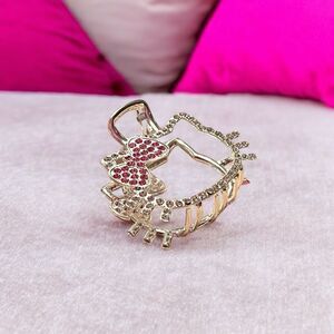 Hello Kitty Pink And Clear Rhinestone Silver Tone Hair Clip NWT