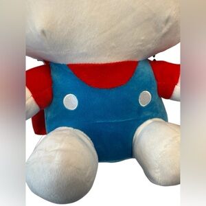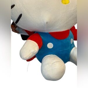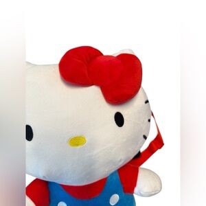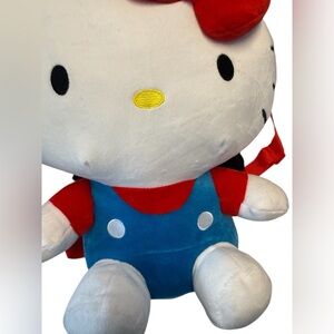 This charming Hello Kitty stuffed animal showcases a vibrant red bow and a delightful blue outfit, making it a perfect addition to any toy collection. Its soft, plush material and iconic minimalist design ensure a cuddly and comforting companion for fans of all ages.