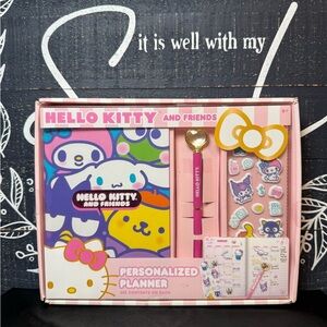 Adorable Faux Fur Hello Kitty plush tote bag with 3D signature red bow. You will also receive a Personalized Planner Set with Blinged HK Pen. Included also are 3D Sanrio Character Stickers