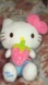 Charming Hello Kitty plush with a pink bow and strawberry. Soft and cuddly for kids.