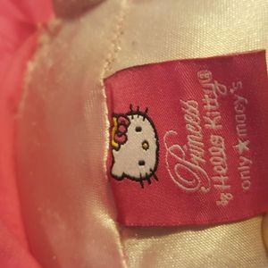 Adorable Hello Kitty plush backpack featuring a crown, pink bow, and sparkly dress design. Soft and cuddly with adjustable straps. Comes from a smoke-free home. No rips.
