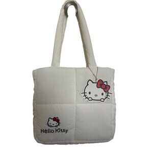 Hello Kitty Quilted Tote Bag White With Red Bow Design Cute & Spacious For Every