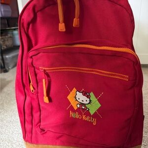Charming Hello Kitty backpack by Sanrio. Features a playful design with vibrant red, orange, and green colors. Purchased in the early 2000s. Barely used!