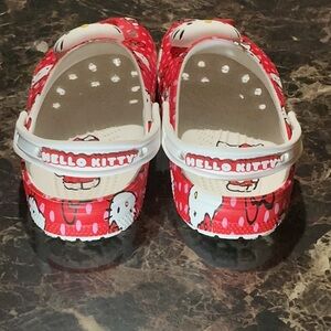 Adorable Hello Kitty clogs in vibrant red. Features cute Hello Kitty design.