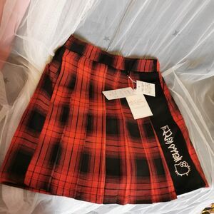 Listing includes Japan import new with tags Hello Kitty black and red plaid skirt with grafitti kitty details and pockets. Fit the mannequin comfortably with measurements: Bust : 35" , Waist : 26.5" , Hip : 36" .