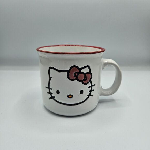 Hello Kitty Red Rim Ceramic Mug by Silver Buffalo 20oz Coffee Cup Sanrio NEW
