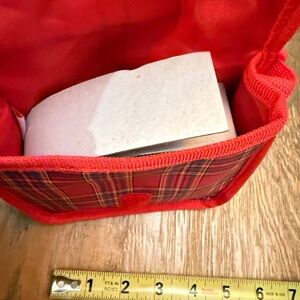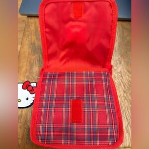 Adorable Hello Kitty bag with red and blue plaid pattern. Ideal for little ones to carry essentials.