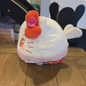 Adorable Hello Kitty plush toy featuring a charming red and white design. Perfect for kids who love cuddly companions.