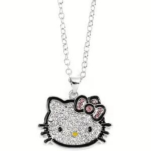 NEW Hello Kitty Rhinestone Silver Pendant 24" Link Chain Necklace Pink Bow Cat