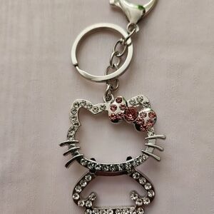 Sparkling Sanrio Hello Kitty Keyring with rhinestones. Features pink and silver accents.