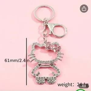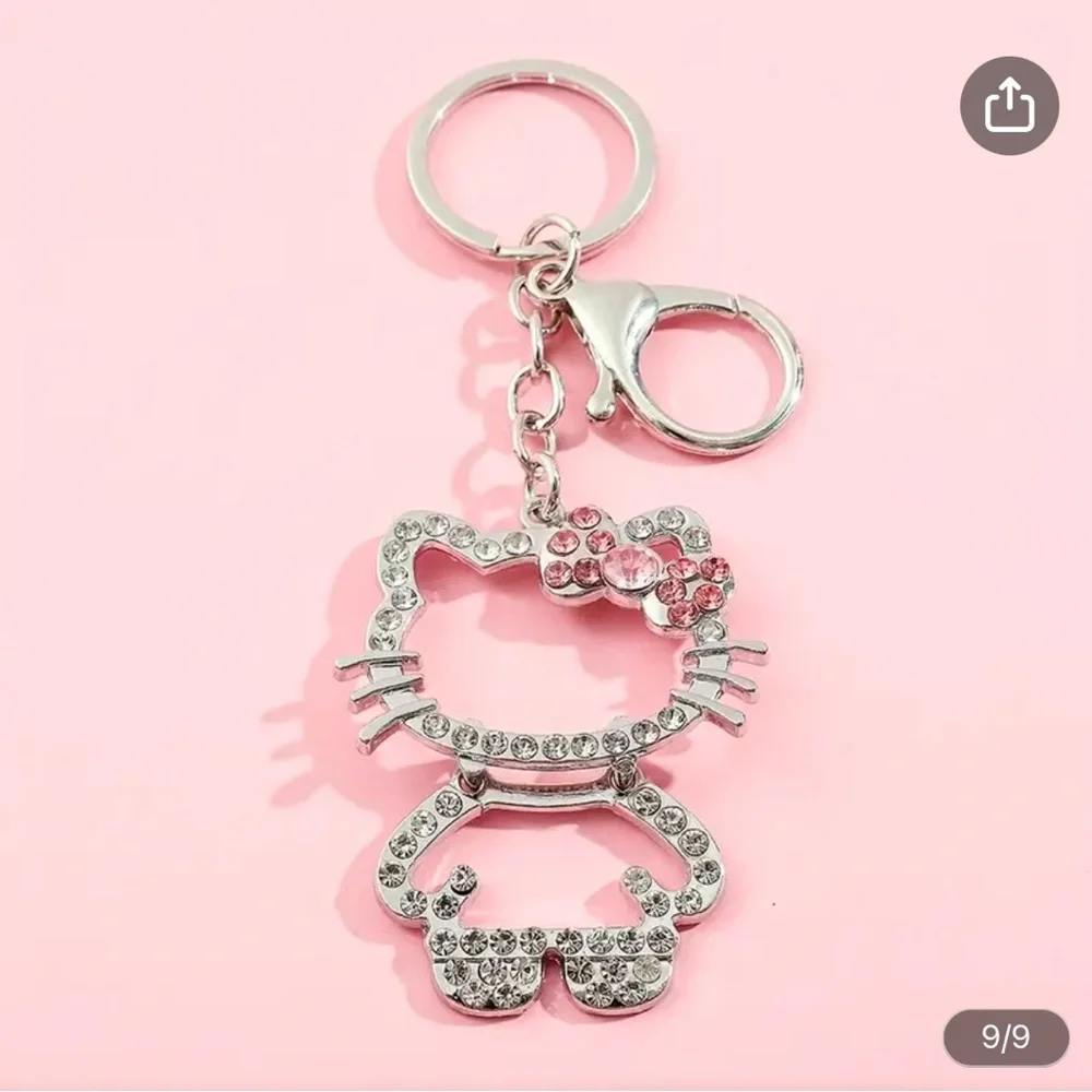 Cute Hello Kitty keychain. Adorned with sparkling rhinestones. Perfect for bags or keys.