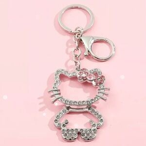 Sparkling silver keychain with rhinestone cat design. Perfect for adding charm to your keys.