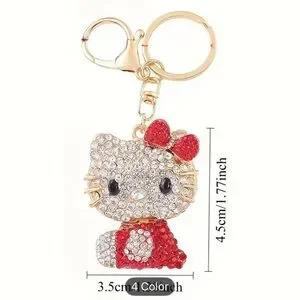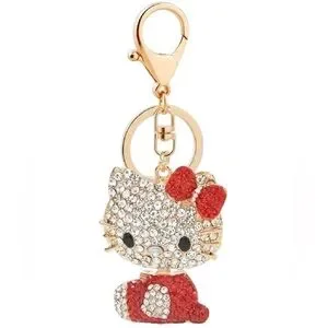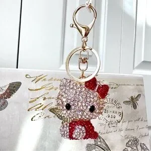 Sparkling Hello Kitty keychain adorned with red and clear rhinestones. Perfect for adding charm to your keys or bag.