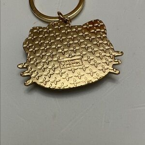 Sparkling Hello Kitty keychain with rhinestones. Features a pink bow and gold accents.