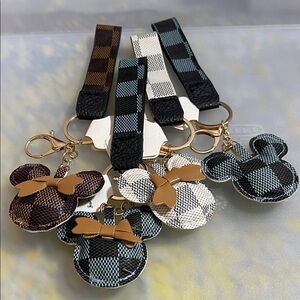 Sparkling Hello Kitty keychain with rhinestones. Features pink, red, and gold accents.