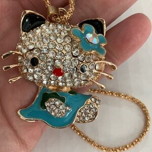 Hello Kitty Rhinestone Pendant With Necklace