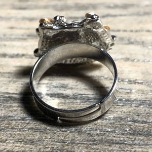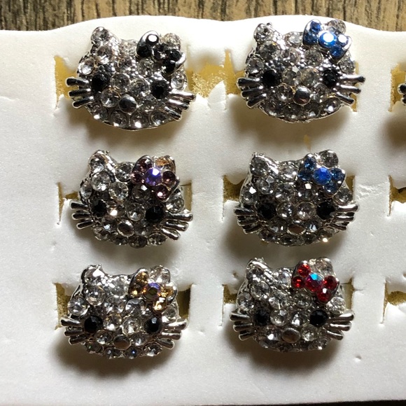 One Hello Kitty Clear Rhinestone adjustable ring with colored rhinestone bow accent. Choose your bow color black, red, blue, or iridescent. Only (7) rings availed . Will post a listing for multiple rings upon request....quantity discount available. Feel free to ask questions!