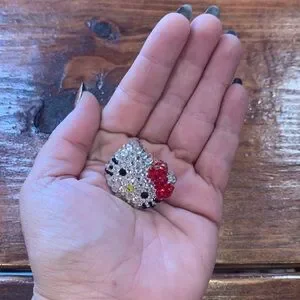 Got all my Hello Kitty jewelry dt an adorable eclectic Houston Heights, TX boutique, Jubilee. back in the early 2000s. I did wear this ring a few times. Some stones are missing. See pics and video. Doesn’t come with original packaging.