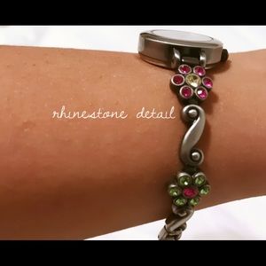 Hello Kitty by Sanrio Rhinestone Stainless Steel Watch. Used but in very good condition. Comes with original melamine clear case, box and extra links. There are some scuffs on the watch but can probably be polished out by a jeweler. Also needs batteries. Please refer to pics for details. Open to all reasonable offers! UO for exposure. Thanks for looking!