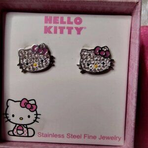 The Hello Kitty Rhinestone Stud Earring Set is a charming pair of earrings featuring the iconic cartoon character Hello Kitty. The earrings are decorated with multicolor rhinestones and are silver plated, giving them a touch of elegance and sparkle. Perfect for fans of Hello Kitty and those who appreciate playful yet stylish jewelry, these stud earrings are sure to add a fun and fashionable touch to any outfit.
