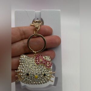 Hello Kitty Rhinestones Keychain Bag Charm Iconic Sanrio Face with Pink Bow