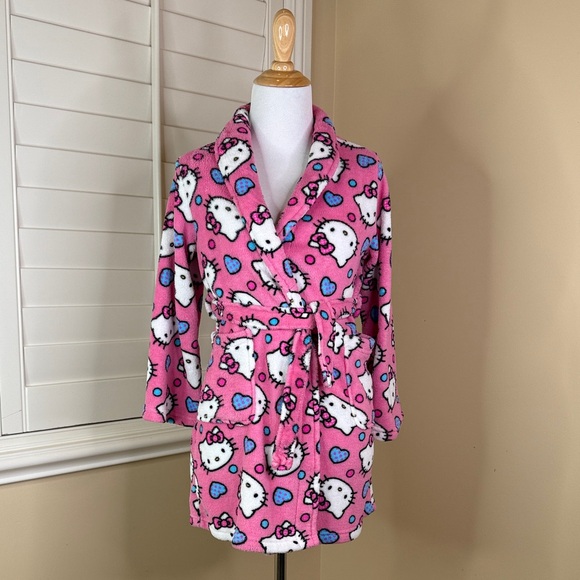 Adorable pink Hello Kitty robe! Includes attached tie belt for comfort. Has 2 pockets. This robe would likely fit a 3, 4, or 5 year old child. From a smoke free & pet free home.