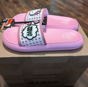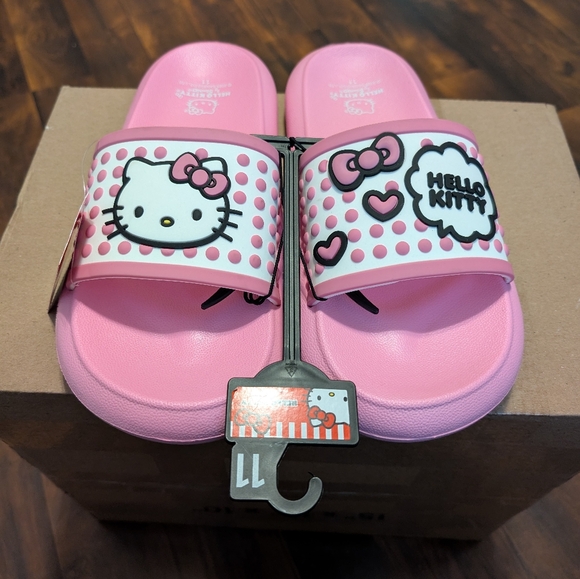 Adorable Hello Kitty slides with polka dot design. Comfortable and fun for everyday wear.
