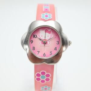 Hello Kitty Sanrio 2007 Pink Silver Flower Watch 29mm Dial with New Battery