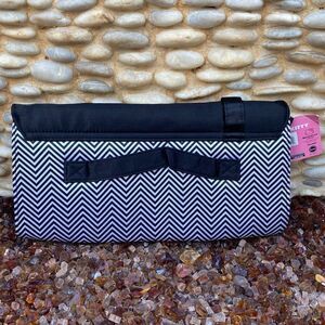 Hello Kitty Sanrio Black and White Chevron Print Satin Clutch. New NWT