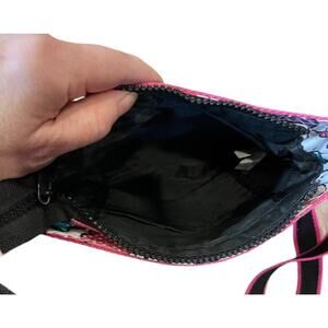 This cute Hello Kitty Sanrio crossbody purse features Clouds, Mice and Squirrels along with kitty. This Zippers Bag Purse from 2013 is the perfect accessory for any Hello Kitty fan. Made of lightweight and water-resistant nylon material, this purse features outer and inside pockets for all your storage needs. The adjustable strap makes it easy to wear crossbody or on your shoulder. It measure 9” long by 8” wide. It is in excellent condition with no flaws to note.