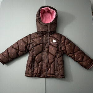 Hello Kitty Sanrio Jacket Girls Toddler 4 Brown Pink Puffer Winter Coat Hood