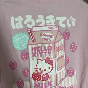 Hello Kitty Sanrio Large Pink Strawberry Milk Valentines Kawaii Japanese T-shirt