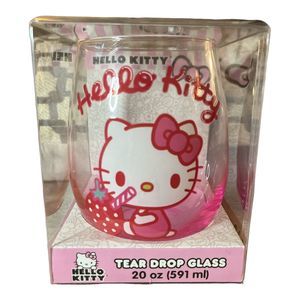 The Hello Kitty Sanrio Strawberry Sip Stemless Wine Glass Tumbler Cup is brand new and a hard-to-find item, making it a great addition to any Hello Kitty collection.
