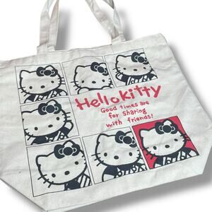 Sanrio Hello Kitty Tote Bag Canvas "Good Times are for Sharing with Friends" School Carry On Holiday Vacation ~14.5"L x 16.75W" x 5.75"D; 9" Handle Drop