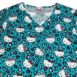 Hello Kitty Scrub Top Shirt Teal Blue Green Cheetah Print Womens Size Large