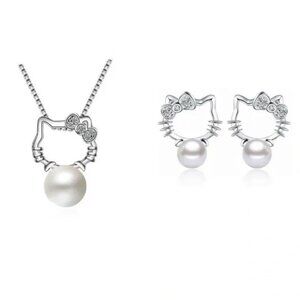 Hello Kitty Set Faux Pearls in 925 Sterling Silver. NWOT