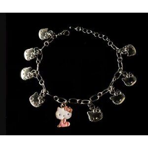 Hello Kitty Silver Charm Bracelet Adjustable Dangle Chain Jewelry Women & Girls