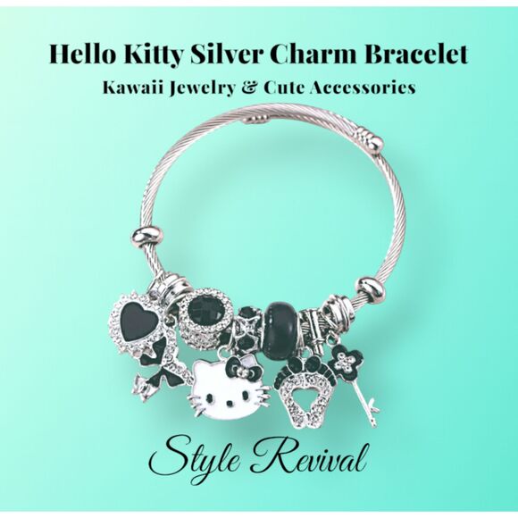 Brand new Hello Kitty–inspired silver charm bracelet with black and silver enamel charms. Cute, collectible, and perfect for kawaii outfits or Sanrio fans of all ages 💖