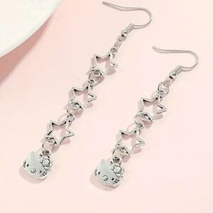 Hello Kitty Silver Star Dangle Earrings