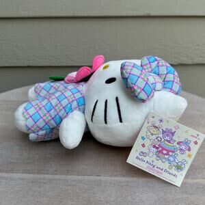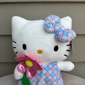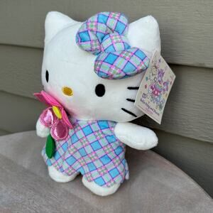 Hello Kitty Soft Figure Sanrio And Friends Plush Toy New Plaid Dress Bow Flowers