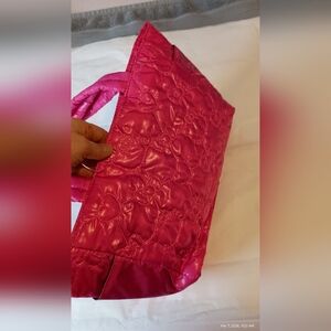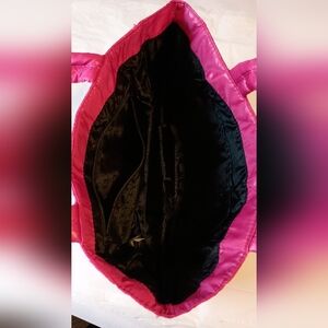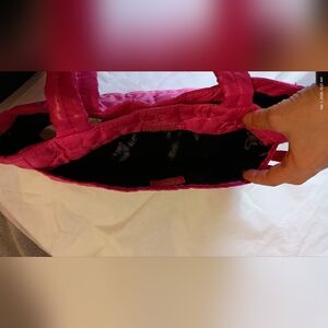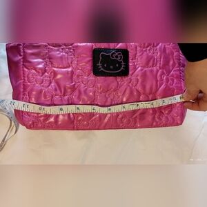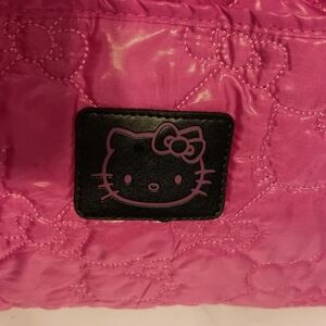 Bright pink Hello Kitty soft fabric purse with multiple pockets and a light magnetic closure. Never used, stored in tote. Inside tag says SANRIO and inside black material has lightly printed hello kitty.
