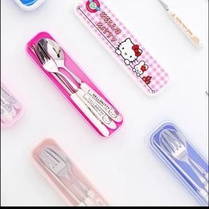 Hello Kitty Stainless Steel Chopsticks, Fork and Spoon Set.