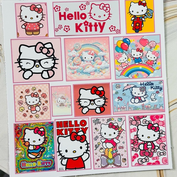 Add some sweetness to your stationery with this Hello Kitty sticker sheet! Featuring adorable Hello Kitty designs, these stickers are perfect for journals, planners, scrapbooks, laptops, water bottles, and crafts. A must-have for Hello Kitty lovers, Sanrio fans, and anyone who enjoys cute, decorative stickers.