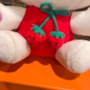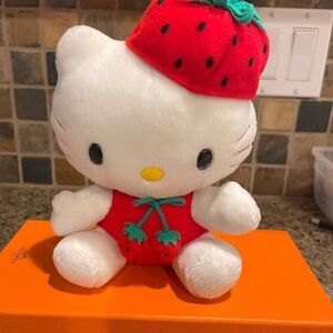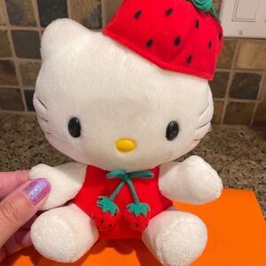 Adorable and harder to find! Hello Kitty strawberry plush with her little strawberry hat and strawberries in front! Excellent condition clean home clean storage! A little over 6 inches tall. From 2002. Soft and sweet!