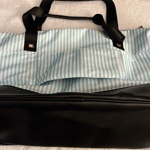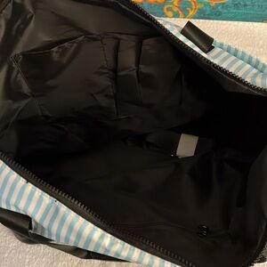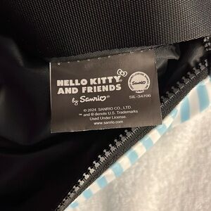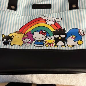 NWOT-Cute duffle bag featuring Hello Kitty and friends. Blue and white stripes with black accents. Has strap on back to go over your suitcase handle. Fits great on your suitcase to move at ease through the airport. Also comes with shoulder strap.