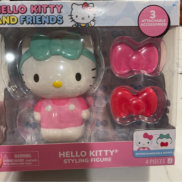 Hello Kitty Styling Figure, 4 piece set, Interchangeable Bows, new in box. see pics for condition and approximate measurements.