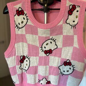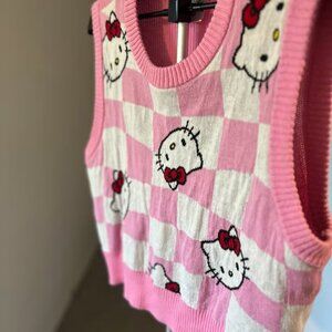 Plus size adorable Hello Kitty sweater vest. Cute White & Pink HK checker design on the front, and plain pink on the back.