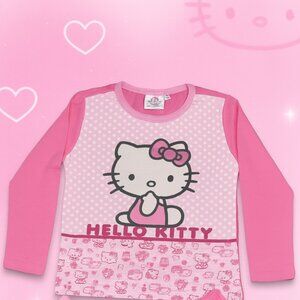 Let her snuggle up in iconic cuteness with this two-piece Hello Kitty pajama set. The long-sleeved top features a bold Hello Kitty graphic with a pink bow and playful polka dot accents, paired with matching solid pink pants for a cozy, coordinated look. With hearts, bows, and a sprinkle of magic, this set is perfect for bedtime cuddles, weekend lounging, or themed sleepovers.